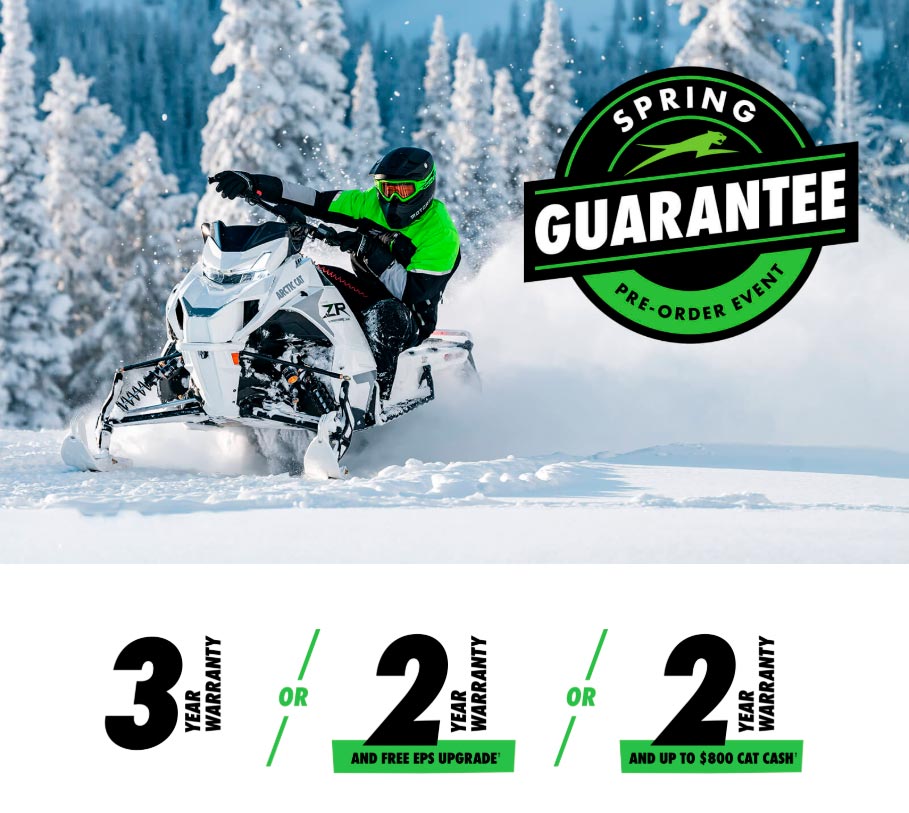 *Available for select Jag®Sno Pro®, ZR® Sno Pro, XF Sno Pro, M Sno Pro, and HCX models. †EPS upgrade only valid on available models and Cat Cash offer is dependent on model purchased. See dealer for full Spring Guarantee offer details.